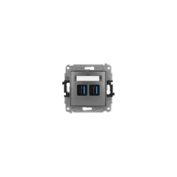 AS Gniazdo pojedyncze z uziemieniem z przesłonami torów prądowych, z ładowarką USB A+C srebro GP-1GZPUSBAC/m/18