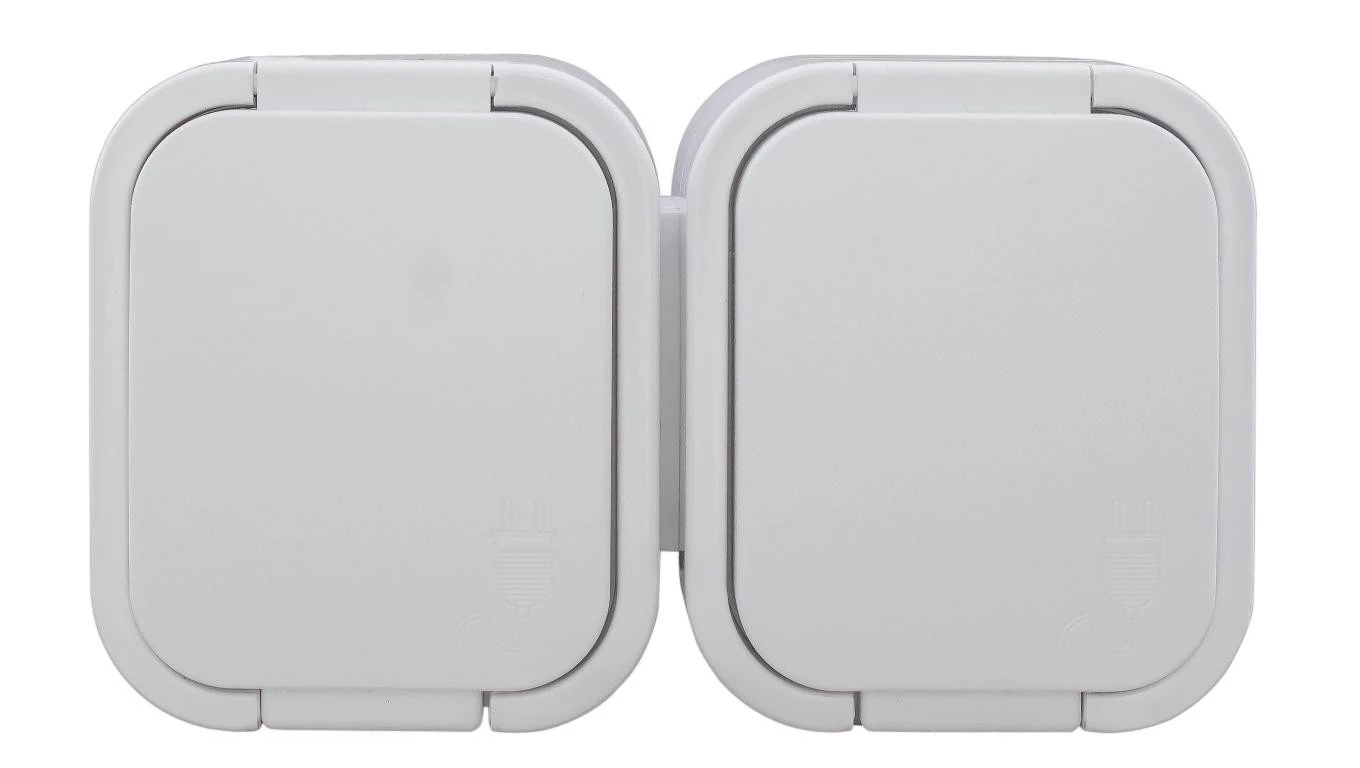 B2 Gniazdo podwójne 2P+Z bryzgoodporne z klapką w kolorze wyrobu IP54 biały 00060278