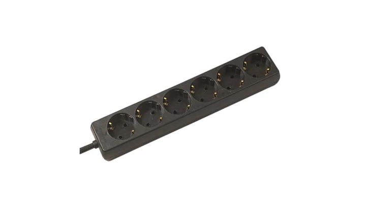 BACHMANN SELLY gniazdo 6-drożne, z uziemieniem, czarne, 1,5 m