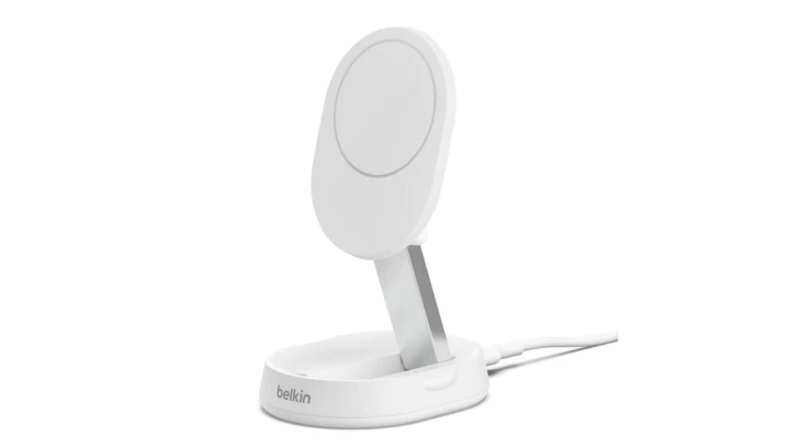 Belkin BoostCharge Pro Ładowarka indukcyjna MagsSafe, Qi2 + zasilacz, biała