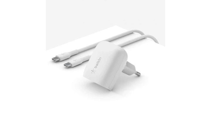 Belkin Ładowarka kątowa 20W USB C PD PPS biała + kabel USB C