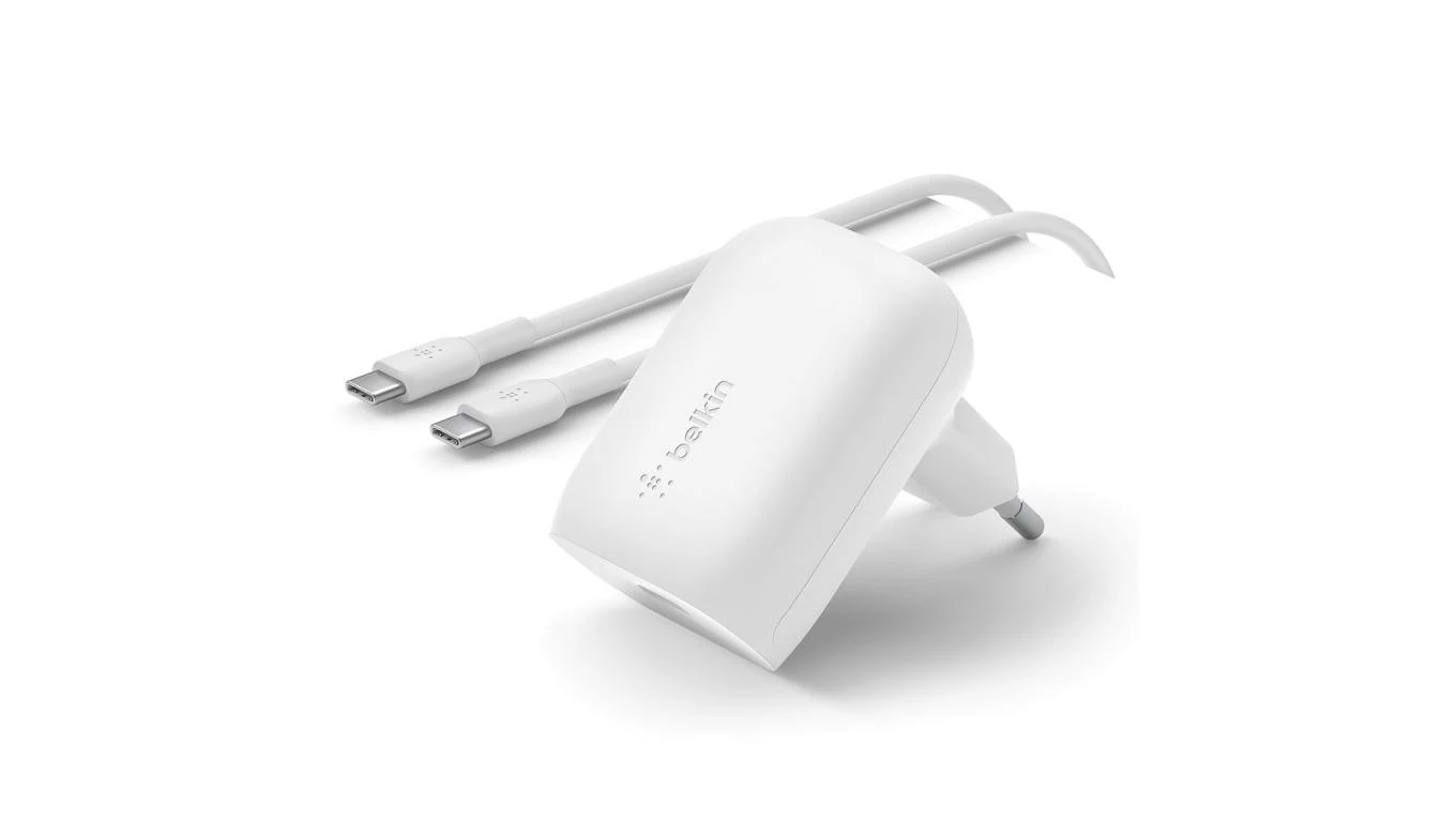 Belkin Ładowarka kątowa 30W USB C, PD, PPS, biała + kabel USB C