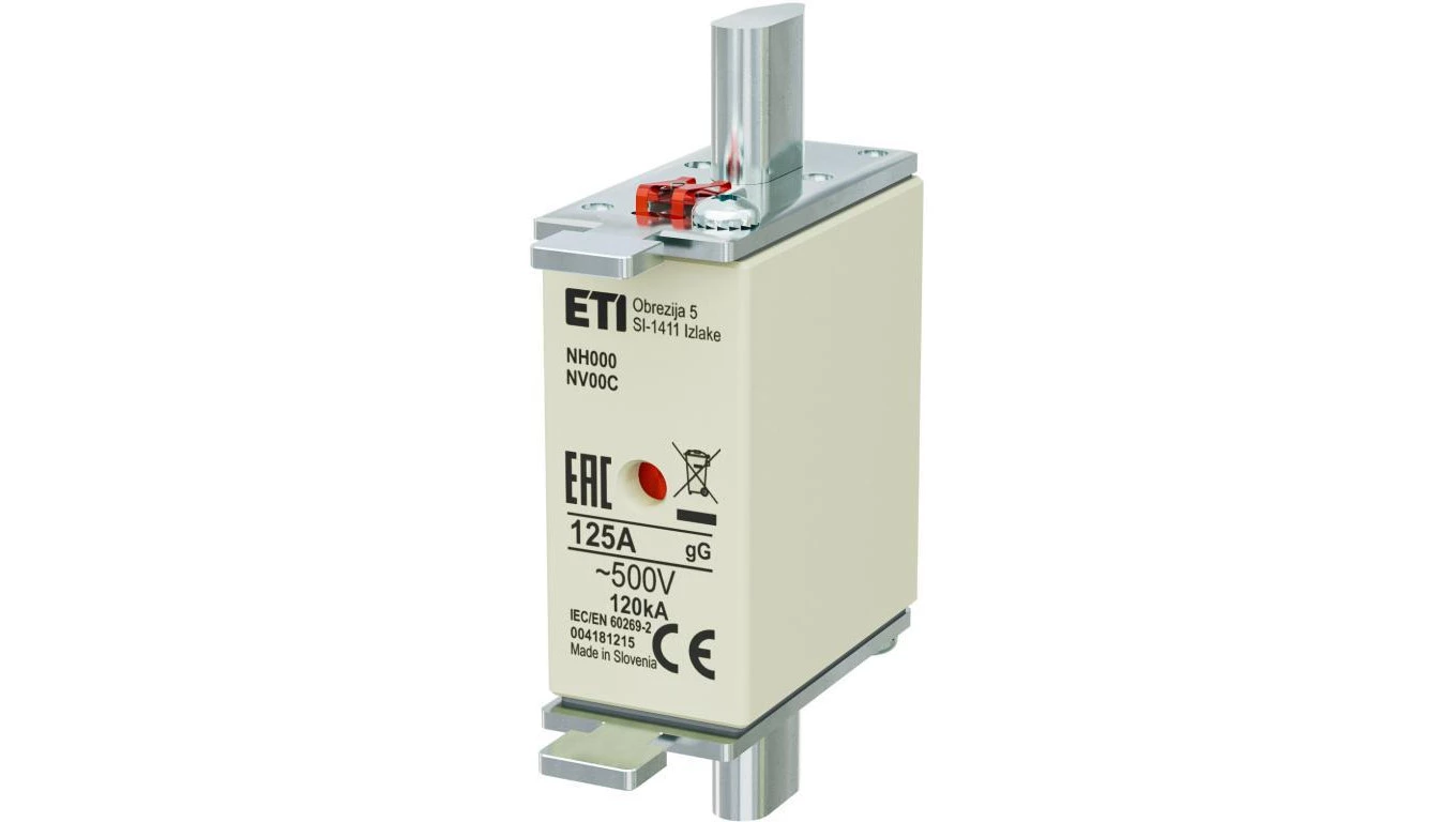 Bezpiecznik nożowy Wkładka topikowa, przemysłowa zwłoczna KOMBI NH000, NH00C gG/gL 125A 500V ETI POLAM
