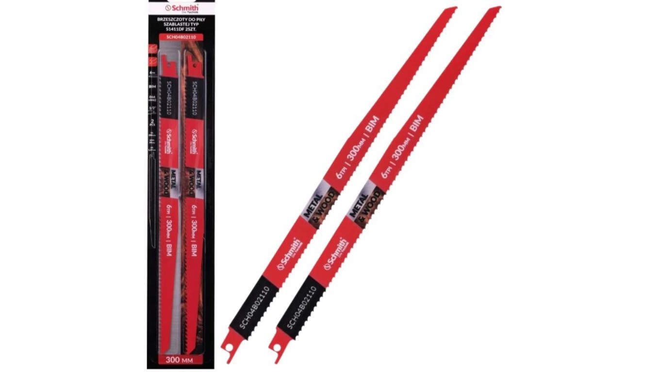 Brzeszczot do piły szablastej 300mm do metalu drewna uniwersalna 6TPI 2szt. Schmith
