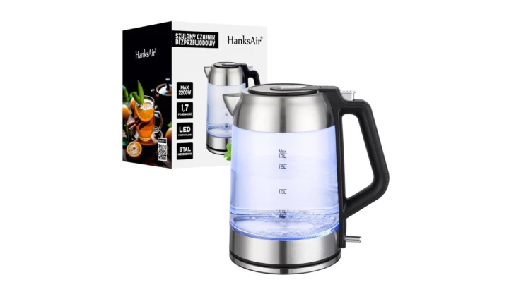 CZAJNIK ELEKTRYCZNY SZKLANY LED 1.7L HANKSAIR