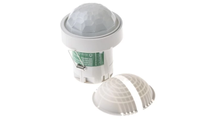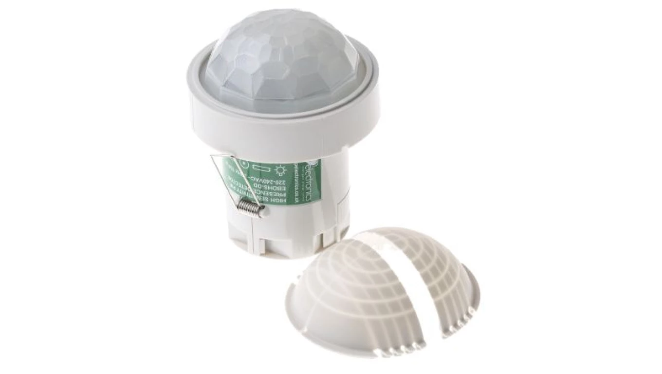 Detektor ruchu PIR o wysokiej czułości, 230 V AC, zasięg 40 m, montaż Sufit, Ø 88mm, Certyfikat CE, EMC-2004/108/WE,