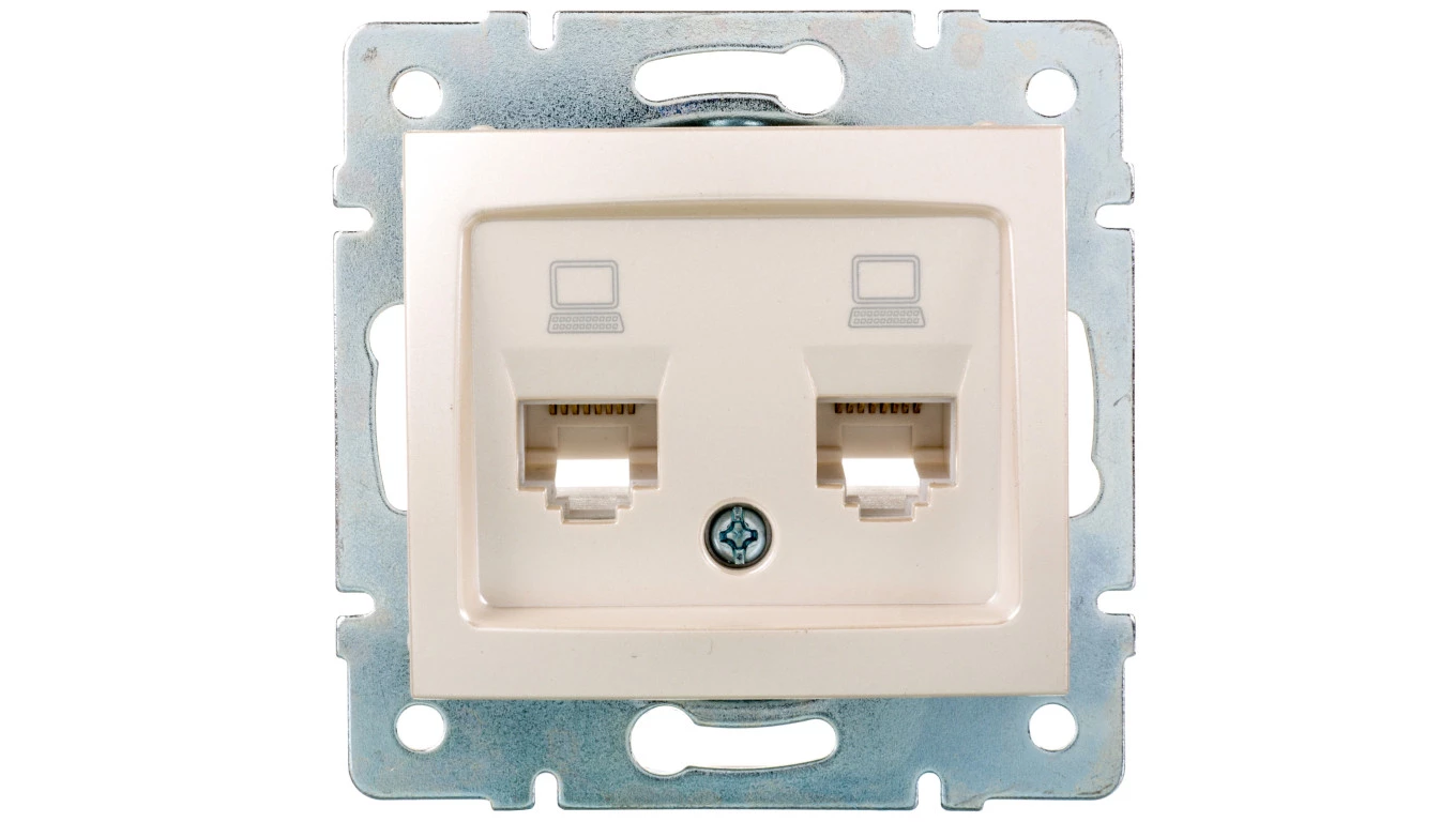 DOMO Gniazdo komputerowe podwójne niezależne 2x RJ45Cat 5e Jack perłowe białe 011410030 24991