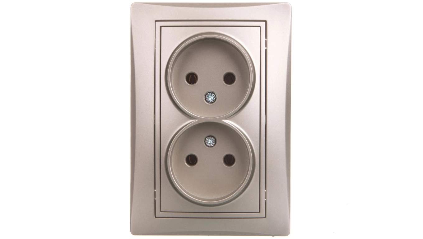 DOMO Gniazdo podwójne bez uziemienia kompletne śrubowe 16A 250V szampański 011280150 25036