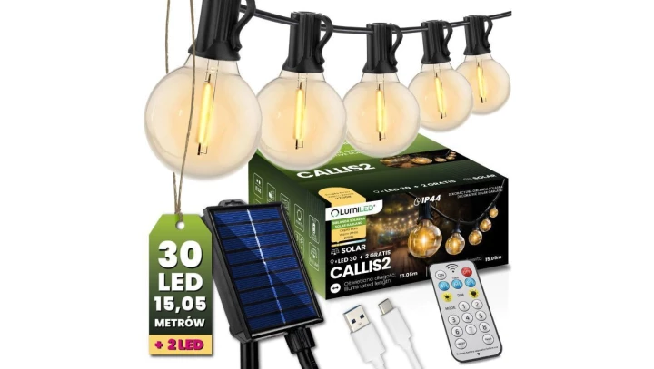 Girlanda Solarna Ogrodowa 30x LED Ozdobne Kuleczki 15,05m 2700K Ciepła + Pilot CALLIS2 LUMILED