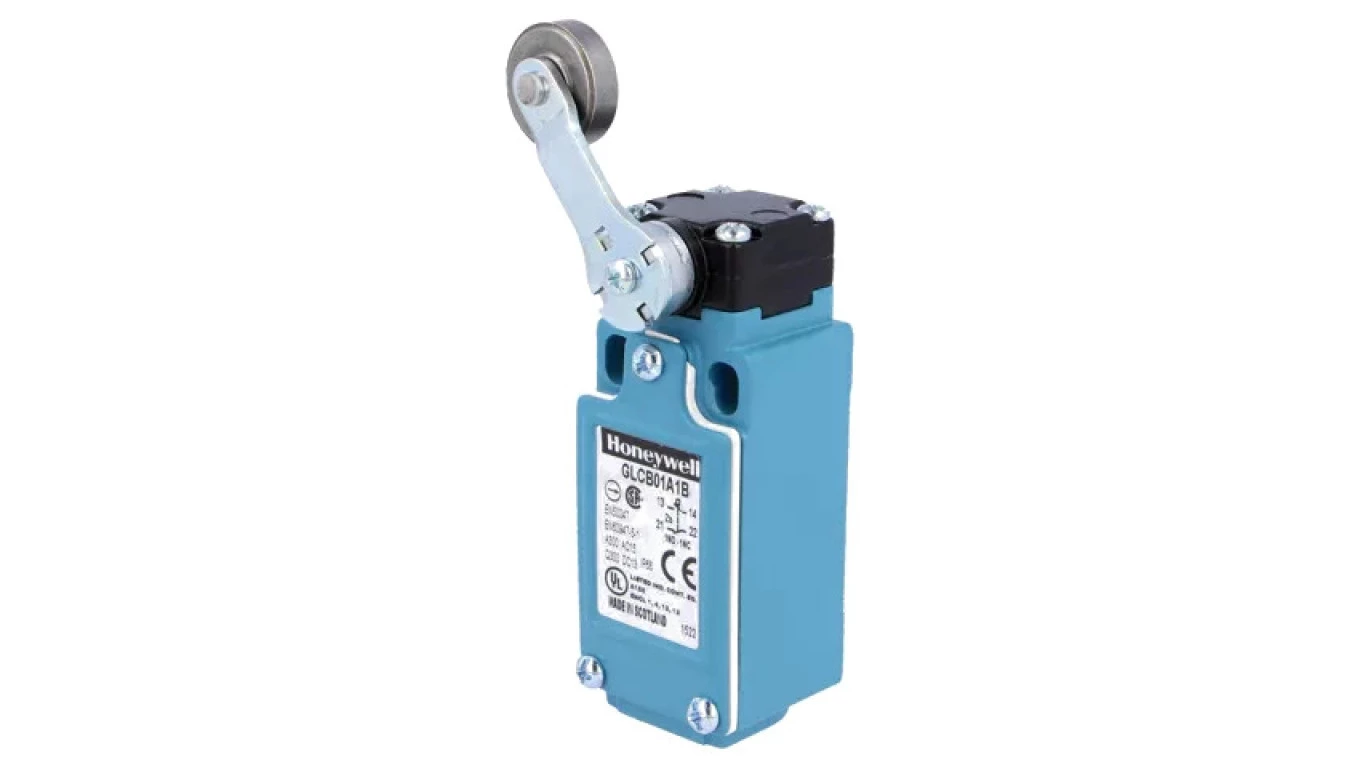 GLCB01A1B Wyłącznik krańcowy dźwignia R 46,5mm, rolka metalowa Ø19mm