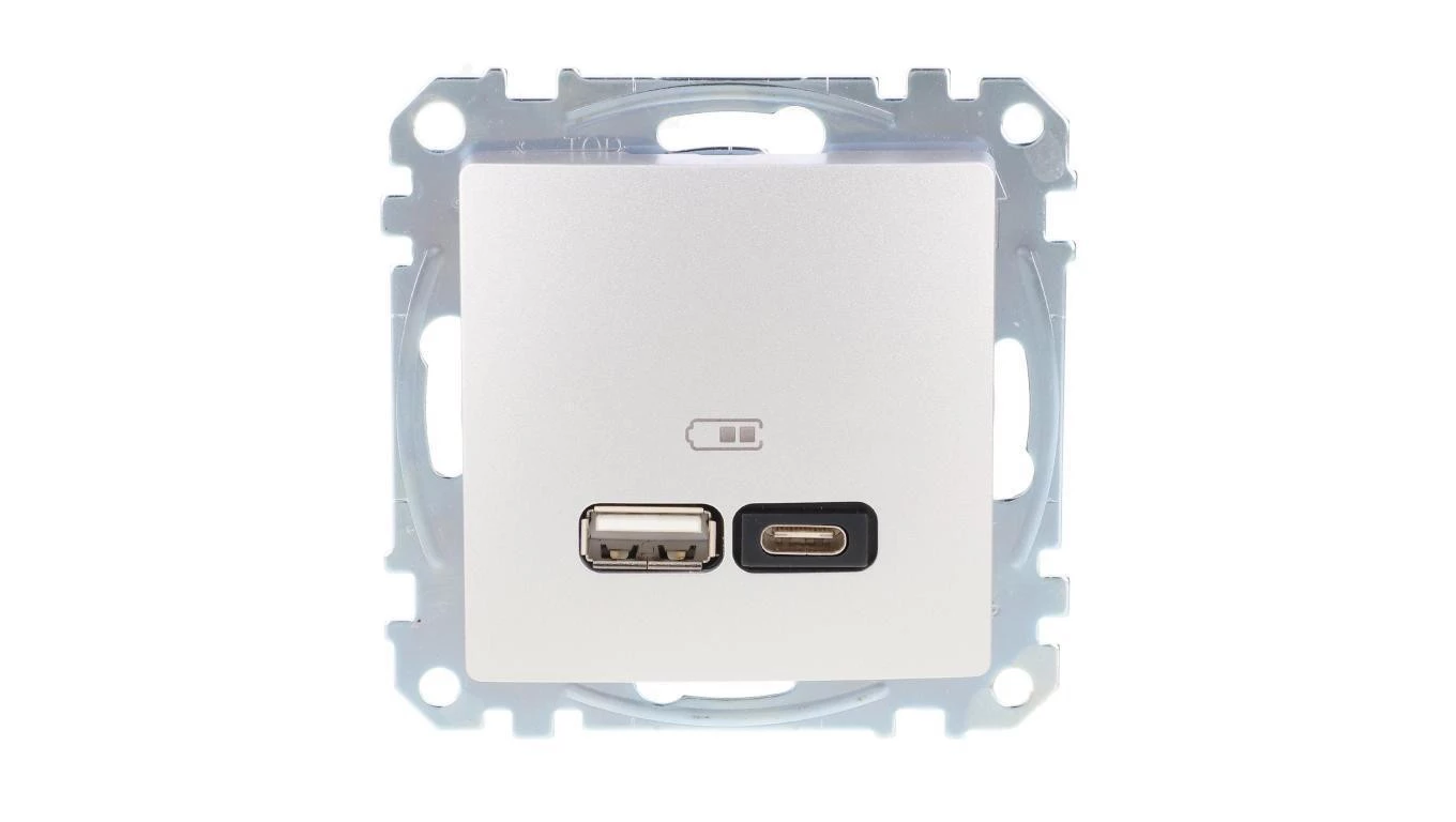 Gniazdo ładowania USB typ A+C 2,4A, srebrne aluminium, Sedna Design i Elements SDD113402