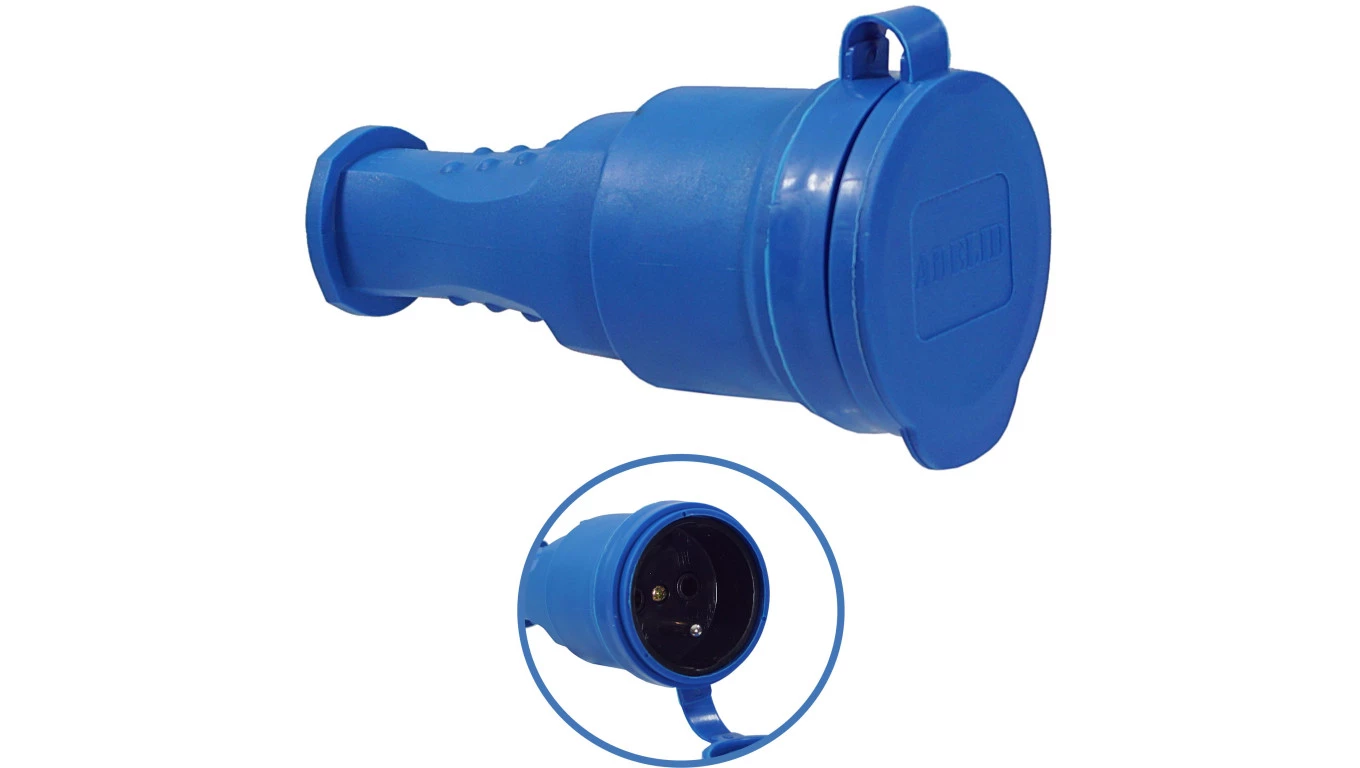 Gniazdo przenośne gumowe 16A 230V IP44 niebieskie