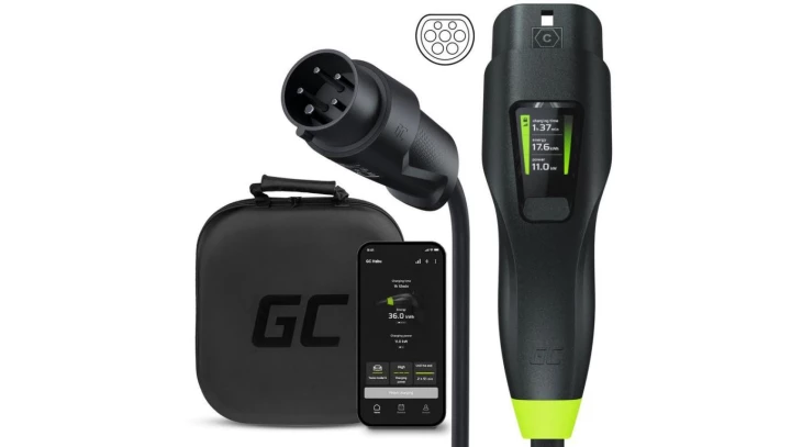 Green Cell GC Habu Ładowarka Mobilna EV 11kW 7m Typ2 CEE16A Wallbox z Aplikacją do Tesla Model Y 3 S X, Kia EV6, Ford Mach-E