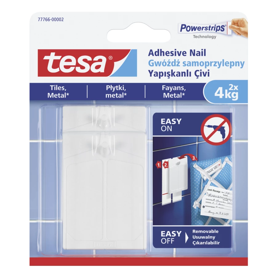 - Samoprzylepny gwóźdź do 4 kg jest dedykowany do gładkich powierzchni w kuchni i w łazience