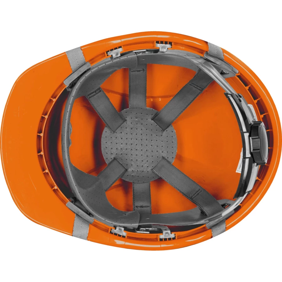 - Regulacja rozmiaru za pomocą pokrętła. Sześcioramienna więźba gwarantue stabilne ułożenie hełmu na głowie