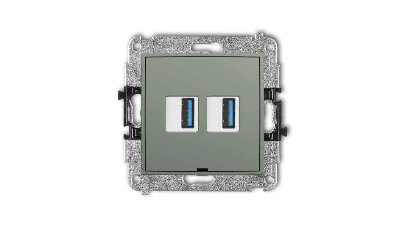 ICON Mechanizm gniazda podwójnego 2xUSB A-A 3.0, bez pola opisowego szałwiowy 61IGUSBBO-6