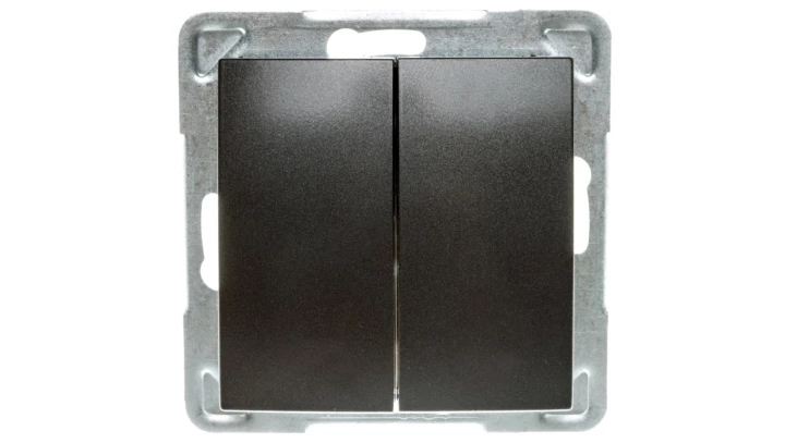 ICON Łącznik jednobiegunowy ze schodowym w stylu amerykańskim (2 klawisze bez piktogramów, osobne zasilanie) taupe 60IWPUS-10.21
