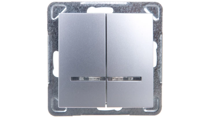 Simon Basic Łącznik świecznikowy z podświetleniem 10AX 250V, szybkozłącza, srebrny mat BMW5L.01/43