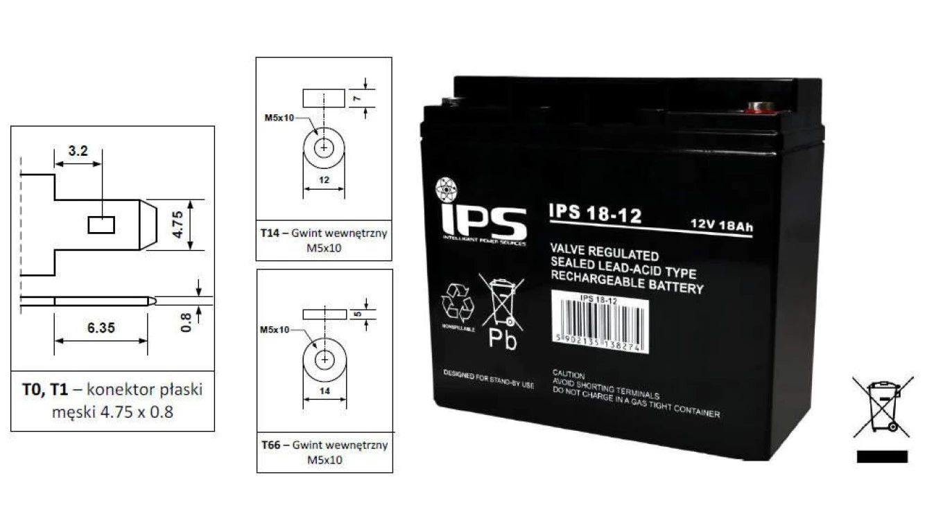 IPS 18-12 Akumulator AGM 12V 18Ah 6-9lat