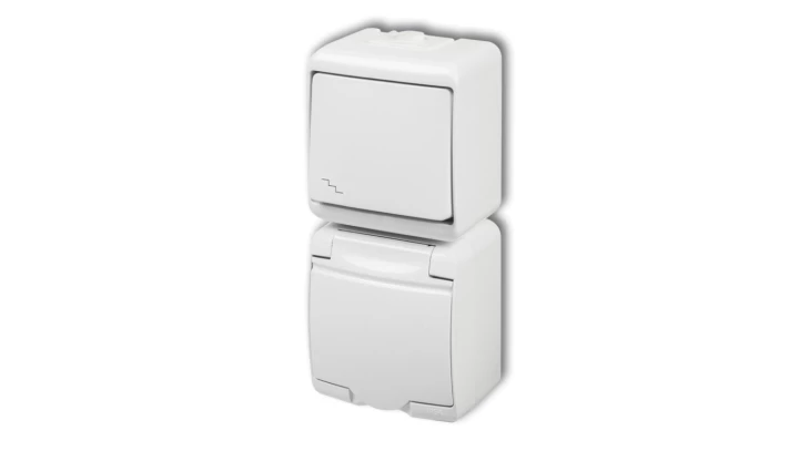 JUNIOR Łącznik schodowy + gniazdo hermetyczne (klapka biała) biały WGHP-3