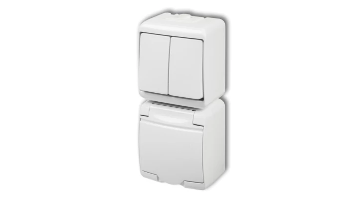JUNIOR Łącznik świecznikowy + gniazdo hermetyczne (klapka dymna) biały WGHP-2dp