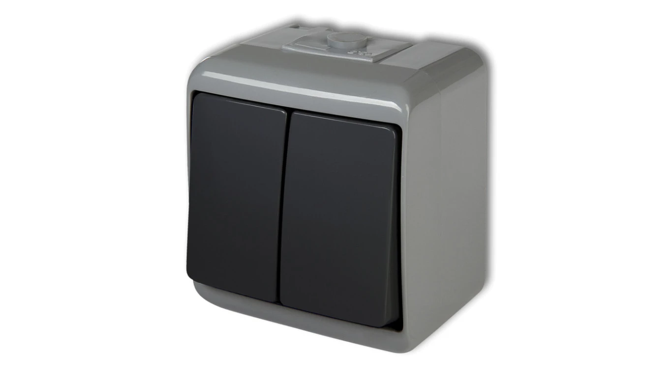 JUNIOR Gniazdo podwójne z/u (klapka dymna) popielaty IP54 10GHE-2d