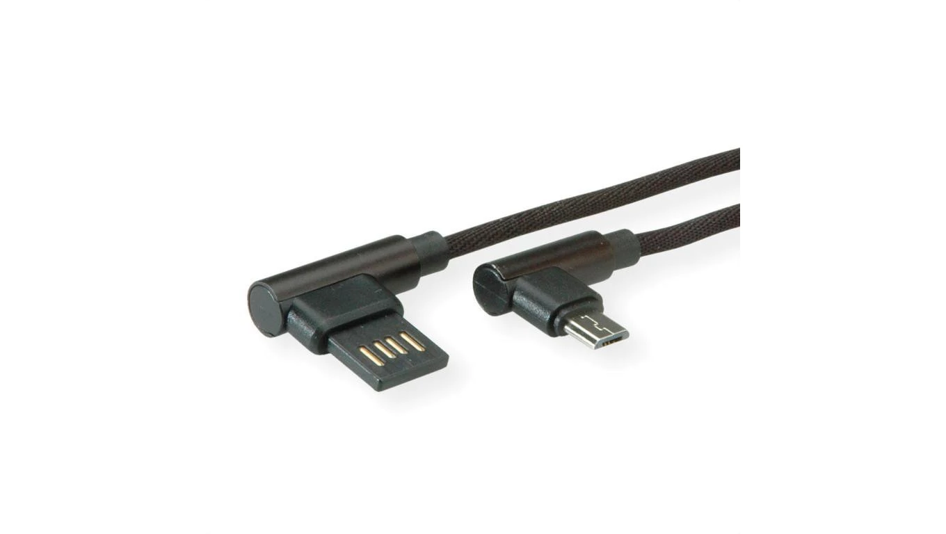 Kabel ROLINE USB 2.0, męski odwracalny A - męski Micro B (kąt 90), czarny, 0,8 m
