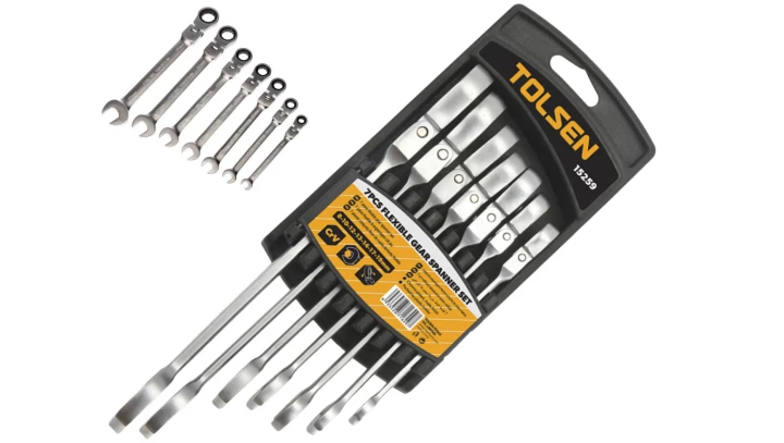 Klucze płasko-oczkowe z grzechotką / klucze płaskie 8-10-12-13-14-17-19 mm / zestaw kluczy grzechotkowych / E15259