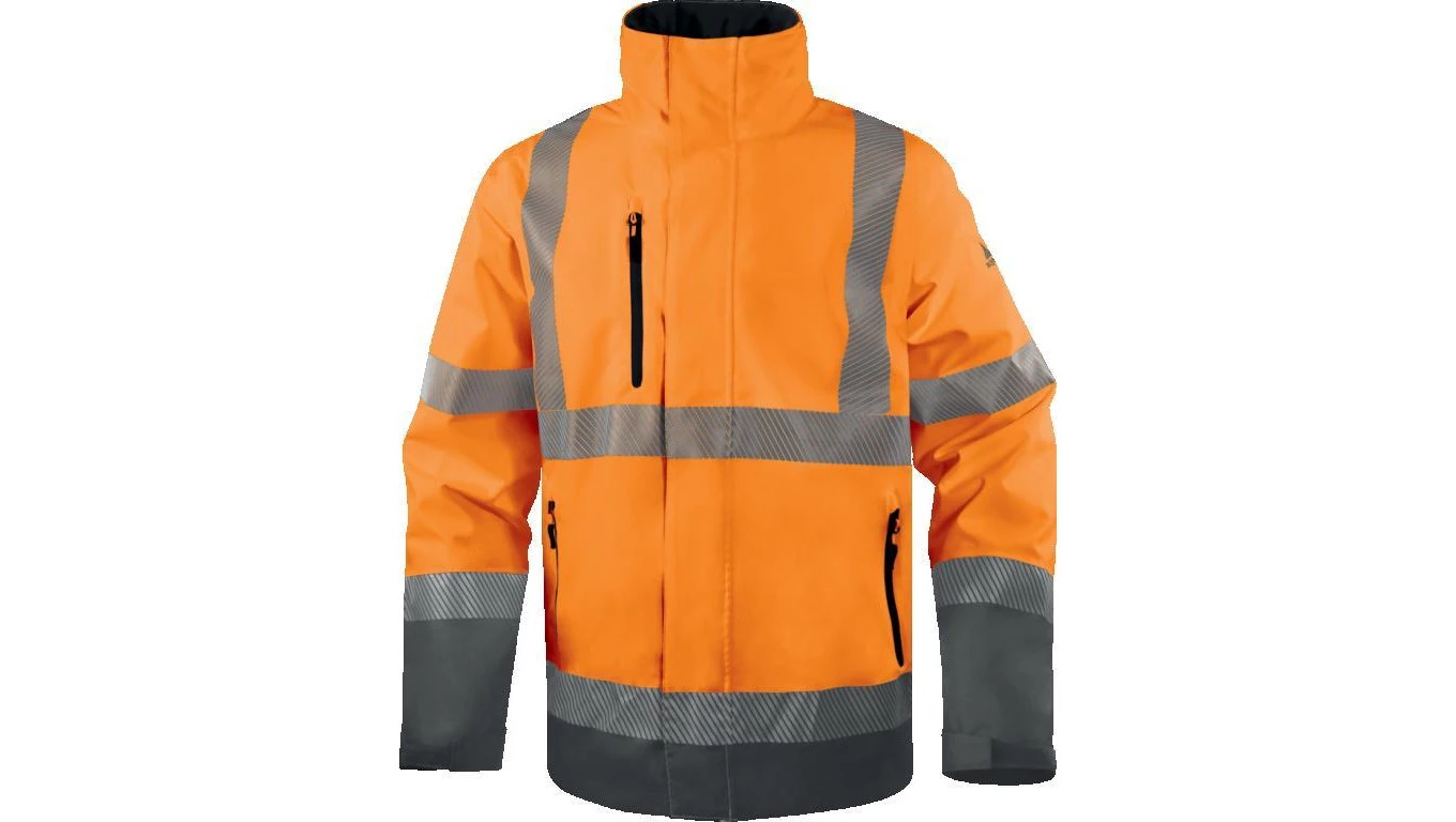 Kurtka ostrzegawcza, wodoodporna i oddychająca z poliestru RIPSTOP Stretch, Pomarańczowy Fluo-Szary, rozmiar: L, TRACKORGT