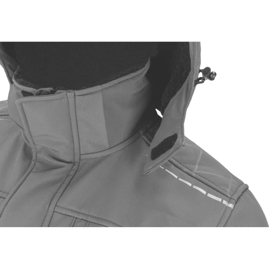 - Specjalna 3-warstwowa tkanina soft-shell z membraną TPU, wodoodporna (10 000 mm), oddychająca (5000 g/m²/24h), gwarantująca wysoki komfort użytkowania