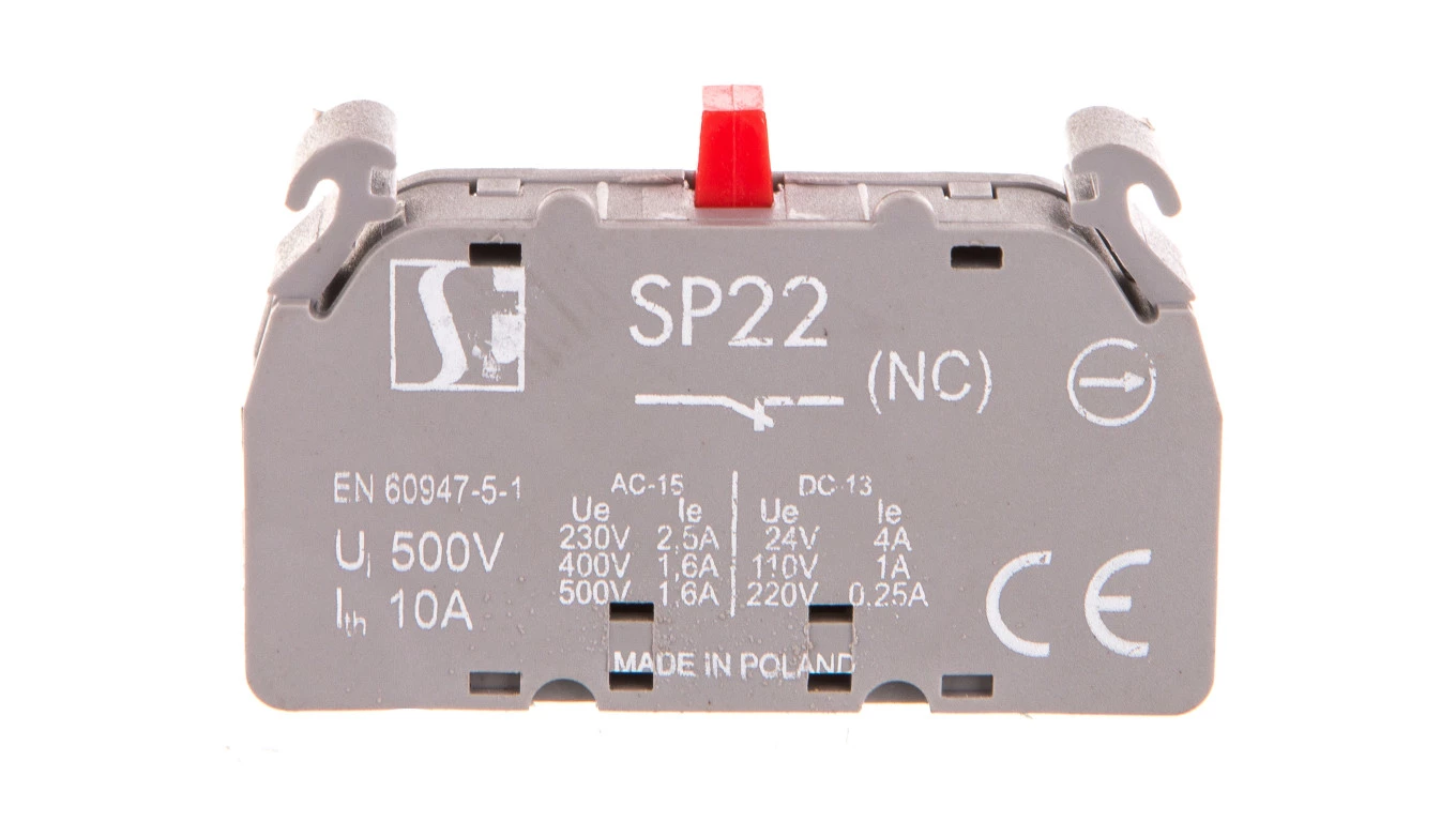 Przycisk sterowniczy 22mm czerwony z samopowrotem 1R SP22-KC-01