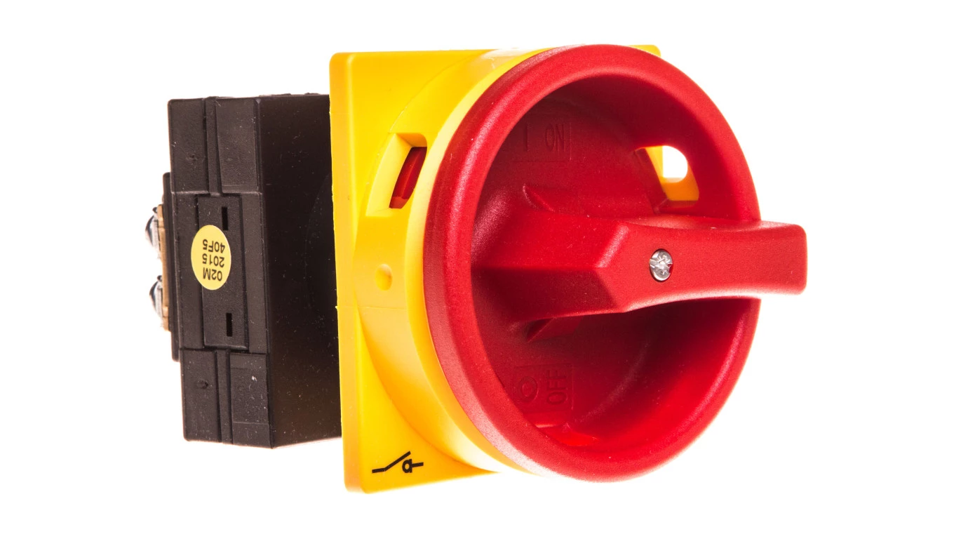 Łącznik krzywkowy 0-1 3P 25A do wbudowania z pokrętłem żółto/czerwonym blokowany kłódką 7GN2010U25