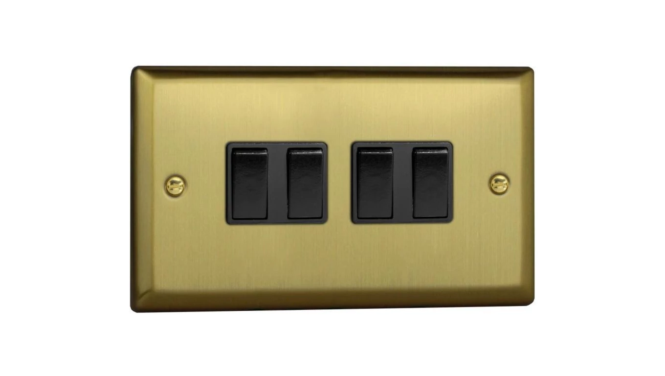 Łącznik uniwersalny schodowy poczwórny 10A 230V klawiszowy 91x150x25mm - kolor złoto szlifowane M-E4.1Z