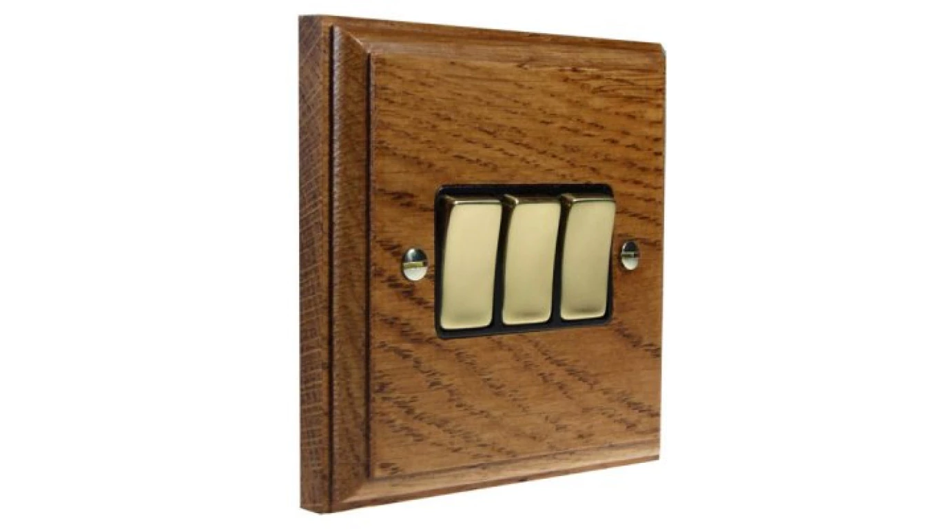 Łącznik uniwersalny schodowy potrójny 10A 230V klawiszowy 96x96mm - kolor ciemny dąb W-E3SMO