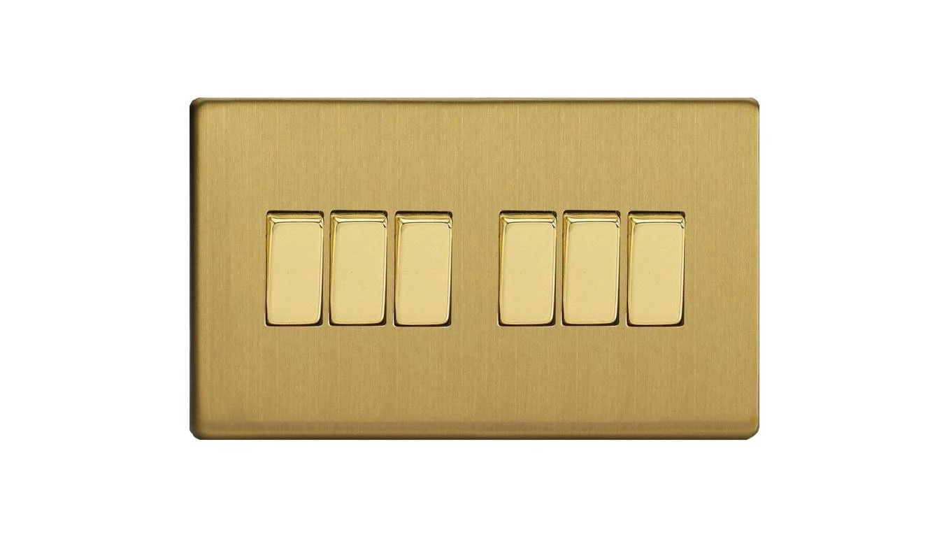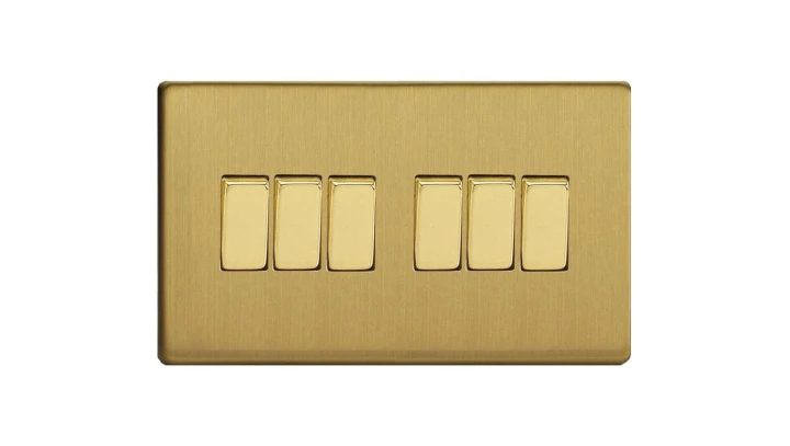 Łącznik uniwersalny schodowy sześciokrotny 10A 230V klawiszowy - kolor mosiądz szlifowany METZ2E3.2B-D