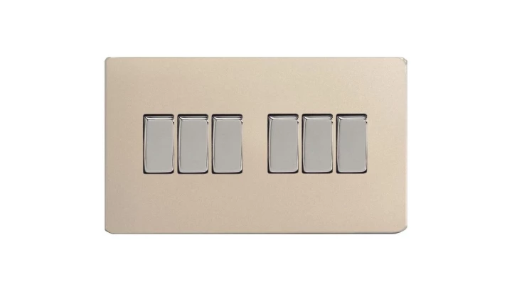 Łącznik uniwersalny schodowy sześciokrotny 10A 230V klawiszowy - kolor satyna METZ2E3.2N-D