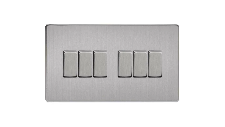 Łącznik uniwersalny schodowy sześciokrotny 10A 230V klawiszowy - kolor stal szlifowana METZ2E3.2S-D