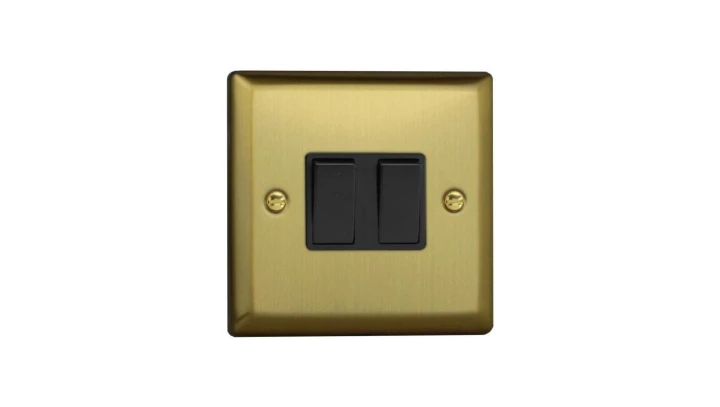 Łącznik uniwersalny schodowy10A 230V + łącznik krzyżowy 10A 230V klawiszowy 91x91x25mm - kolor złoto szlifowane M-E1SZ+E1KSZ