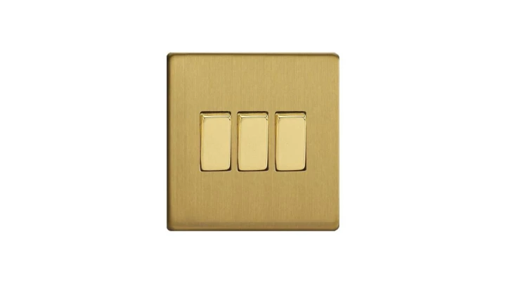 Łącznik zwierny potrójny 10A 250V klawiszowy (stal nierdzewna lakierowana) - kolor mosiądz szlifowany METZ2E3CHB-D