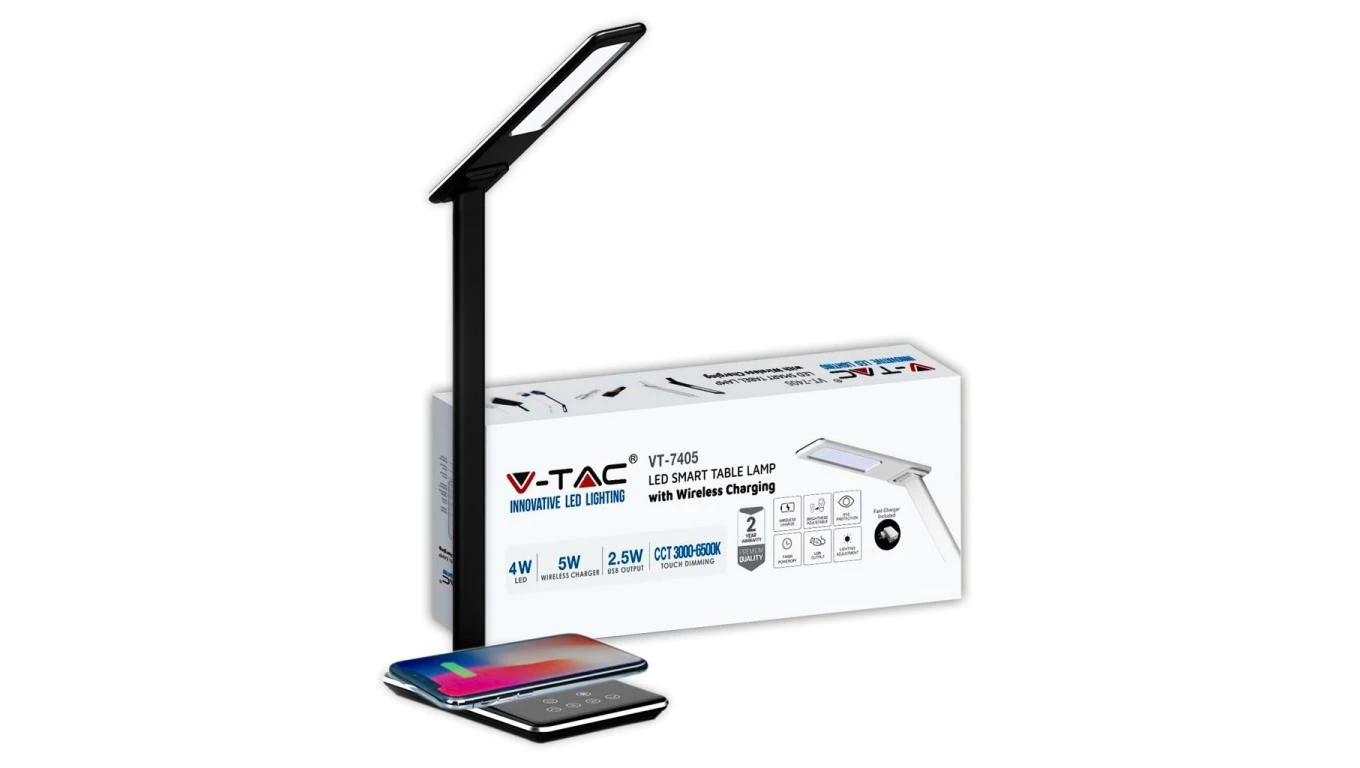 Lampa Biurkowa LED 4W 3w1 Bezprzewodowa ładowarka Czarna 218600