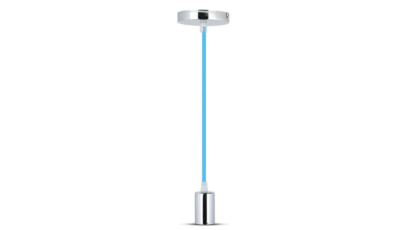 Lampa dekoracyjna wisząca oprawka chrom + przewód niebieski dł:1000mm E27 max 60W IP20 V-TAC VT-7338-BL