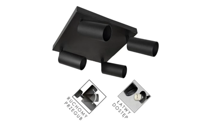 Lampa spotlight Fargo 4xGU10 czarna kwadrat