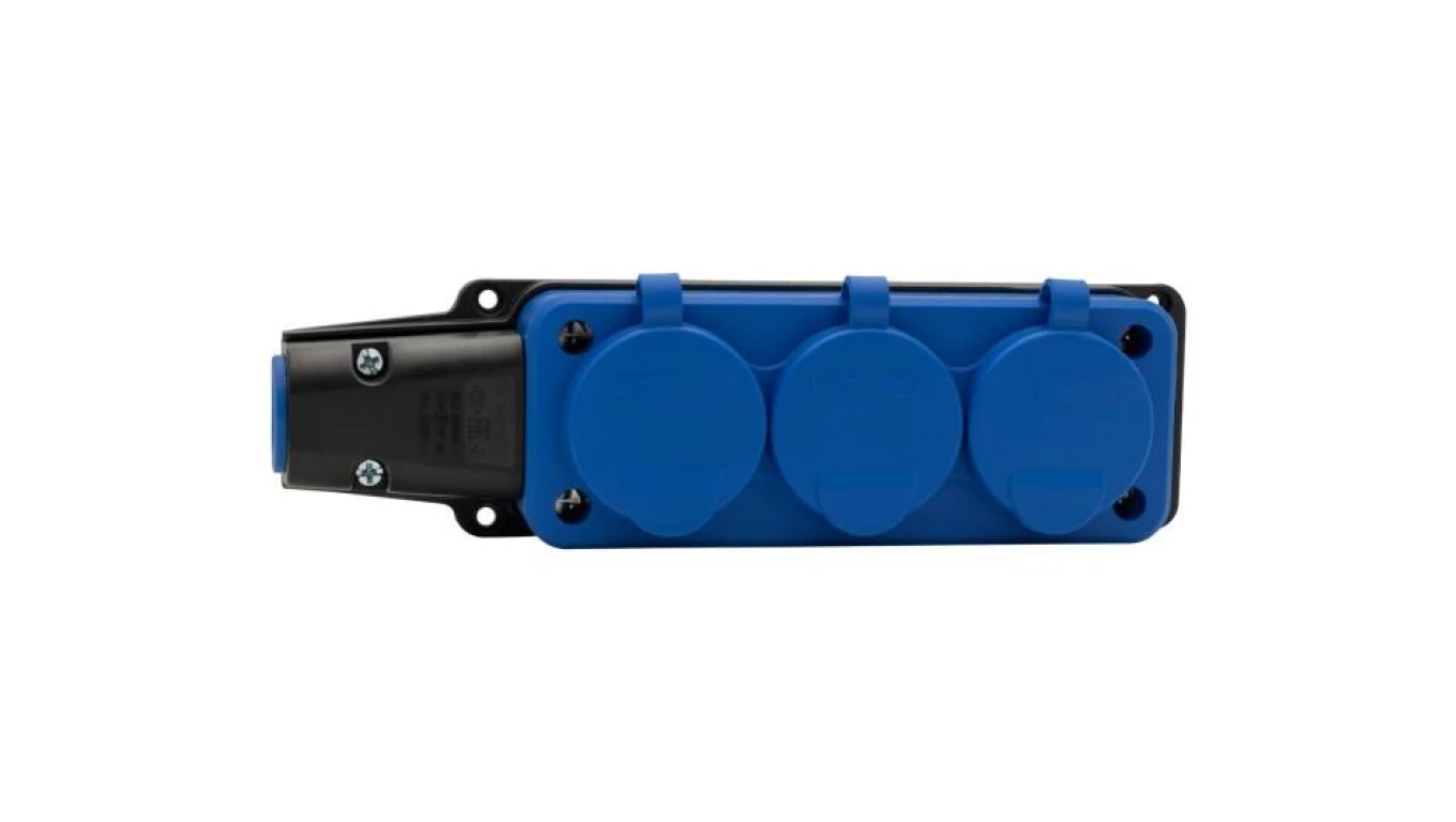 Listwa gumowa 3x230V 16A IP54 SCHUKO niebieska