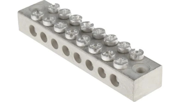 Listwa zaciskowa uziemienia, 0 → 16 AWG, l. żył: 8, zakończenie: Wkręcane, Mosiądz