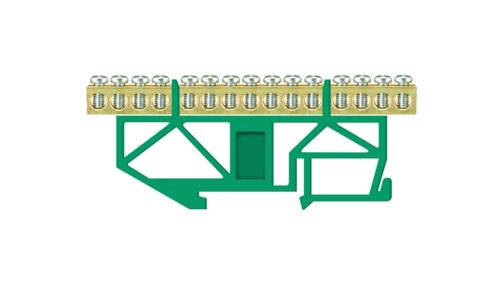 Listwa zaciskowa wysoka na szynę 15-torowa zielona TH35 E.4043
