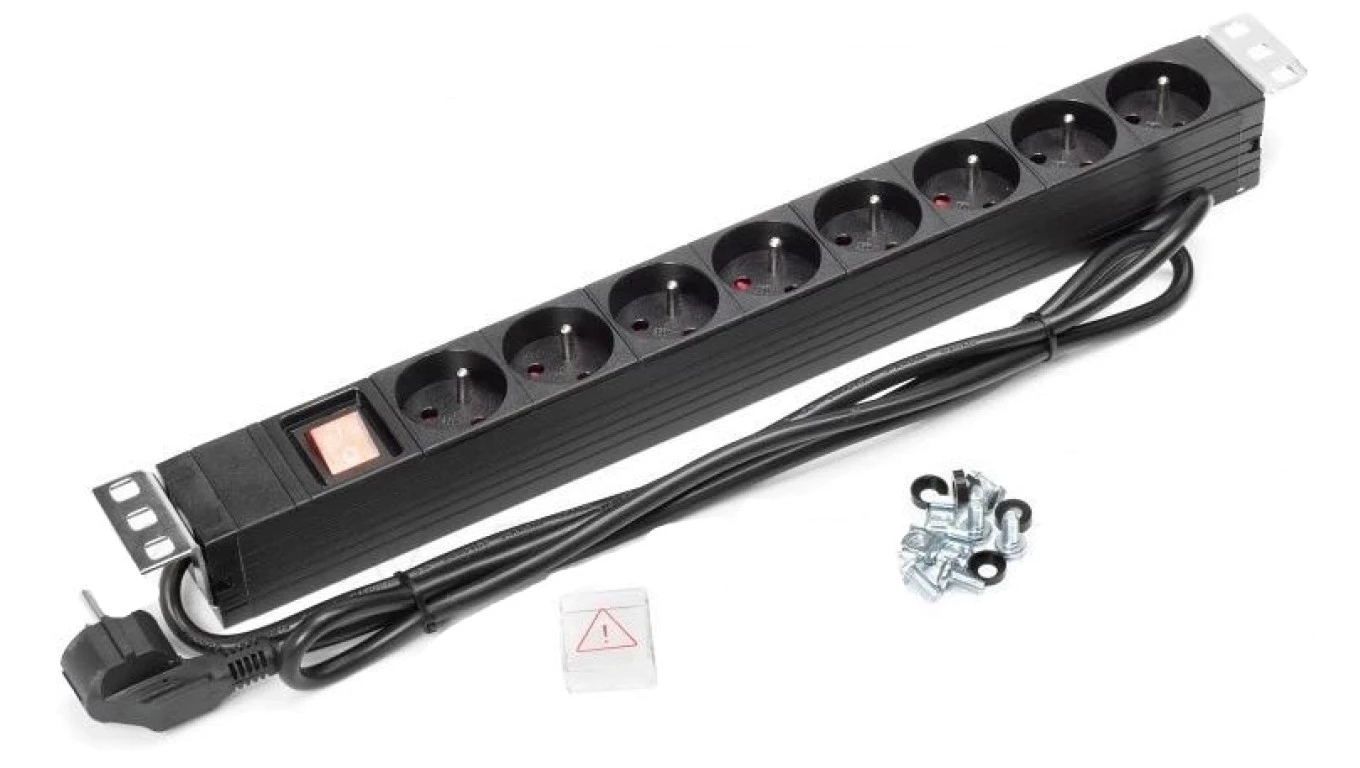 Listwa zasilająca RACK 19 1U 8 gniazd z wyłącznikiem 1,8m