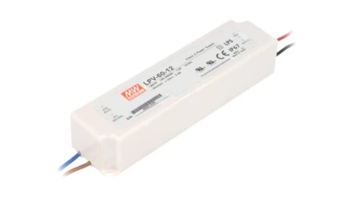 LPV-60-12 Zasilacz impulsowy, LED, 60W, 12VDC, 5A, 90÷264VAC, 127÷370VDC