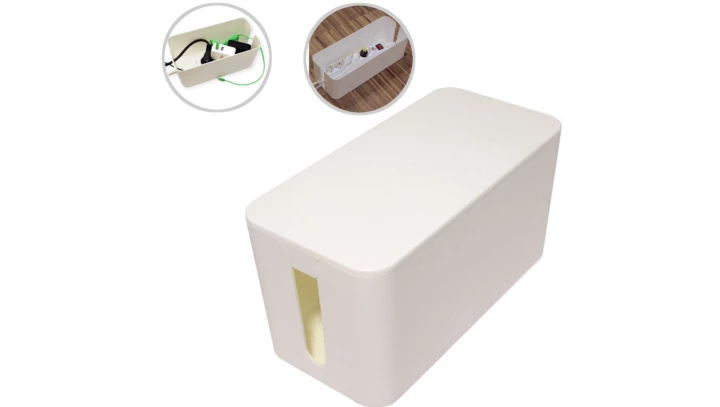 Mały organizer pojemnik na kable, listwy, ładowarki 235 x 115 x 120 mm CABLE BOX biały