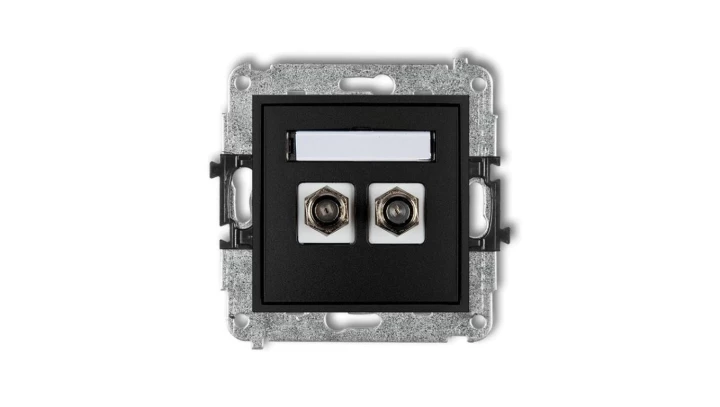 MINI Gniazdo antenowe podwójne typu F (SAT) pozłacany czarny mat 12MGF-2.1