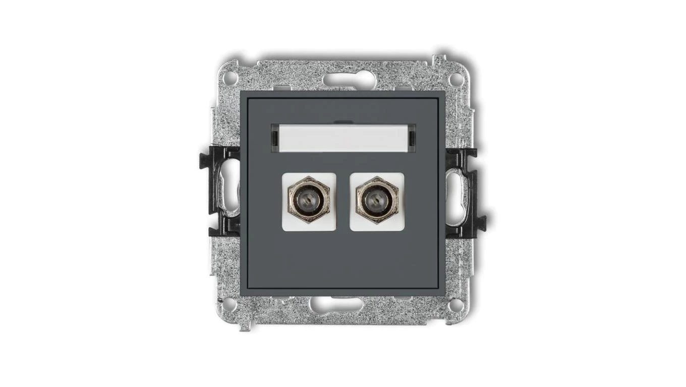 MINI Gniazdo antenowe podwójne typu F (SAT) pozłacany grafitowy mat 28MGF-2.1
